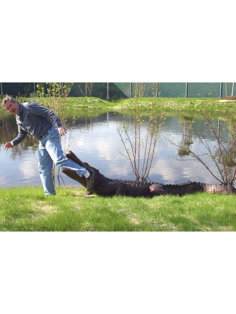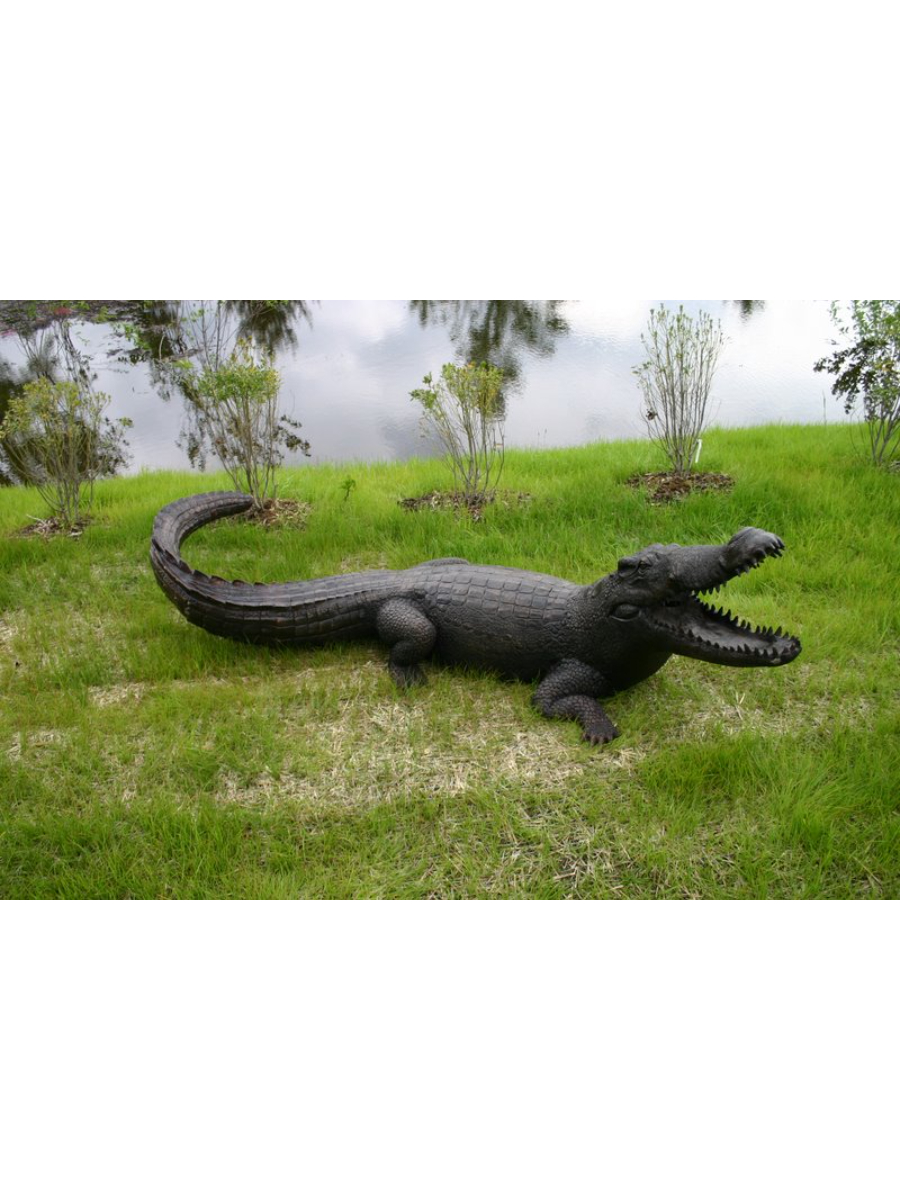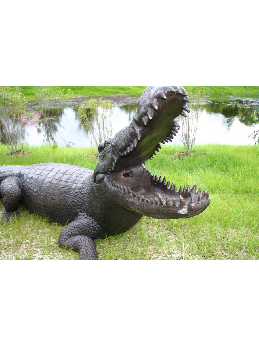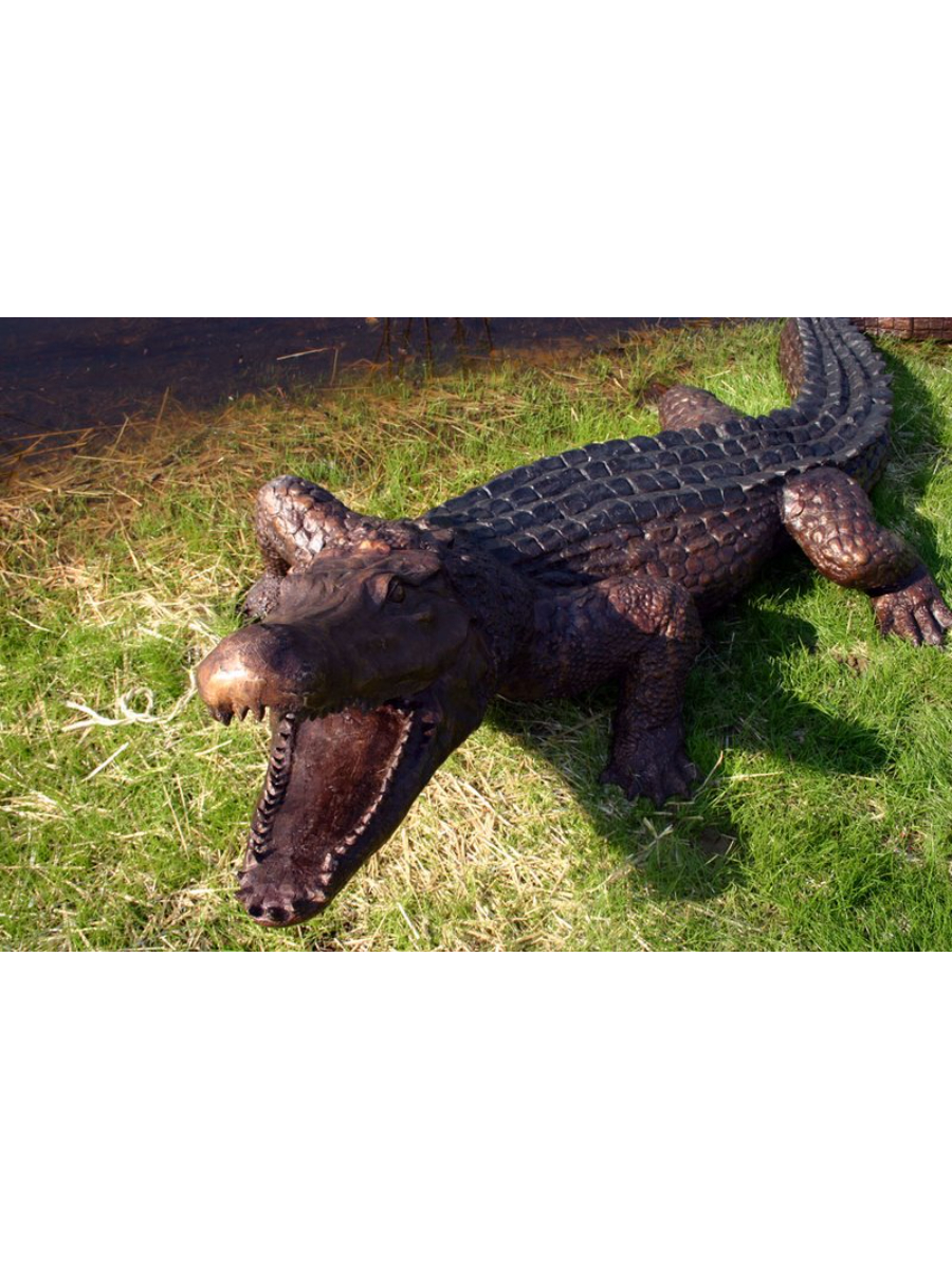 Life-sized alligator fountain, authentic and impressive looking. The size, the detailing of the reptile skin, and the posture all serve to make this reptile look amazingly real. This is a true masterwork of lost wax bronze casting. An attraction for each adventure park, zoo or serving as a mascot this bronze alligator will harvest the interest of people. Solid material – all is in place to be connected to a water pipe. This bronze alligator fountain looks fantastic next to a pond and will for sure keep the trouble makers away.