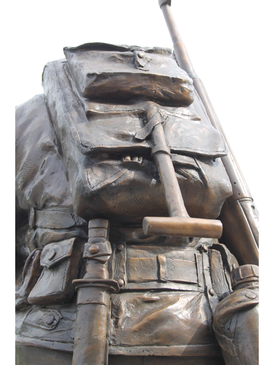 This new design is created exclusively by All Classics Ltd and is only available through us or our certified affiliates. A truly amazing sculpture of a kneeling soldier that is life-size and very large to be the ultimate memorial and tribute to the heroes that fight for our country. Pay the ultimate tribute to your heroes with a long last, heavy cast bronze memorial for your organization, park or even your own home.