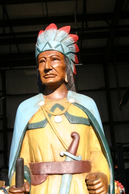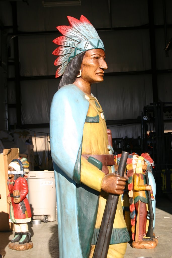 Hand carved 70″ Wood Indian wearing a Shawl with Knife in belt. Beautifully Hand Painted design.